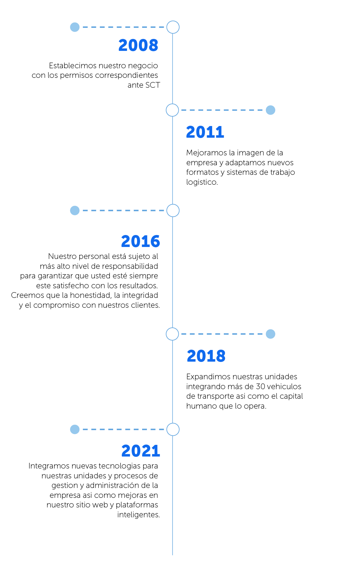 Somos una empresa dedicada al transporte de personal fundada en 2008 comprometidos con la seguridad y satisfacción de nuestros clientes, brindamos servicios de transporte de personal de manera eficiente a través de nuestro personal ampliamente calificado.