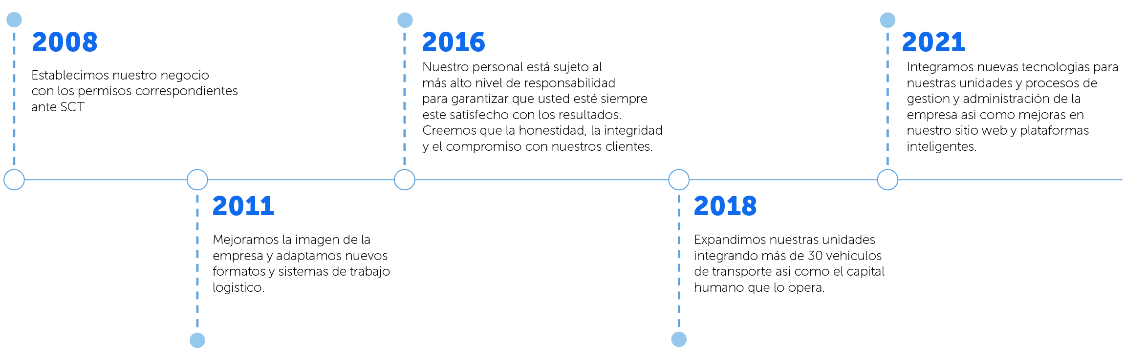 Somos una empresa dedicada al transporte de personal fundada en 2008 comprometidos con la seguridad y satisfacción de nuestros clientes, brindamos servicios de transporte de personal de manera eficiente a través de nuestro personal ampliamente calificado.